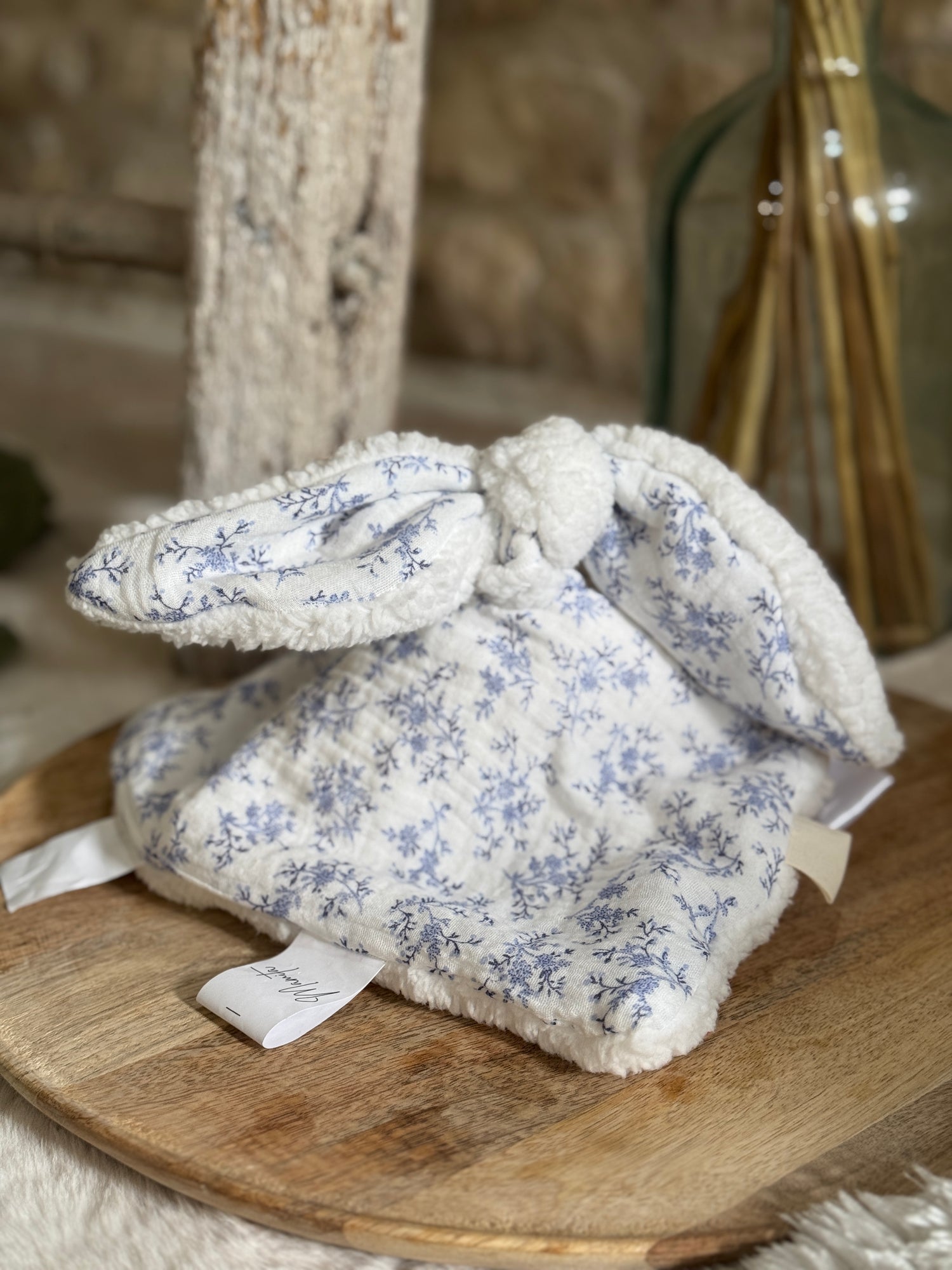 C'est un doudou étiquettes à la fois simple et singulier. Un carré de tissu au choix, neuf étiquettes cousues avec soin, et une promesse : offrir un instant de calme, de douceur et de réconfort. Pour les enfants, mais aussi pour les adultes.