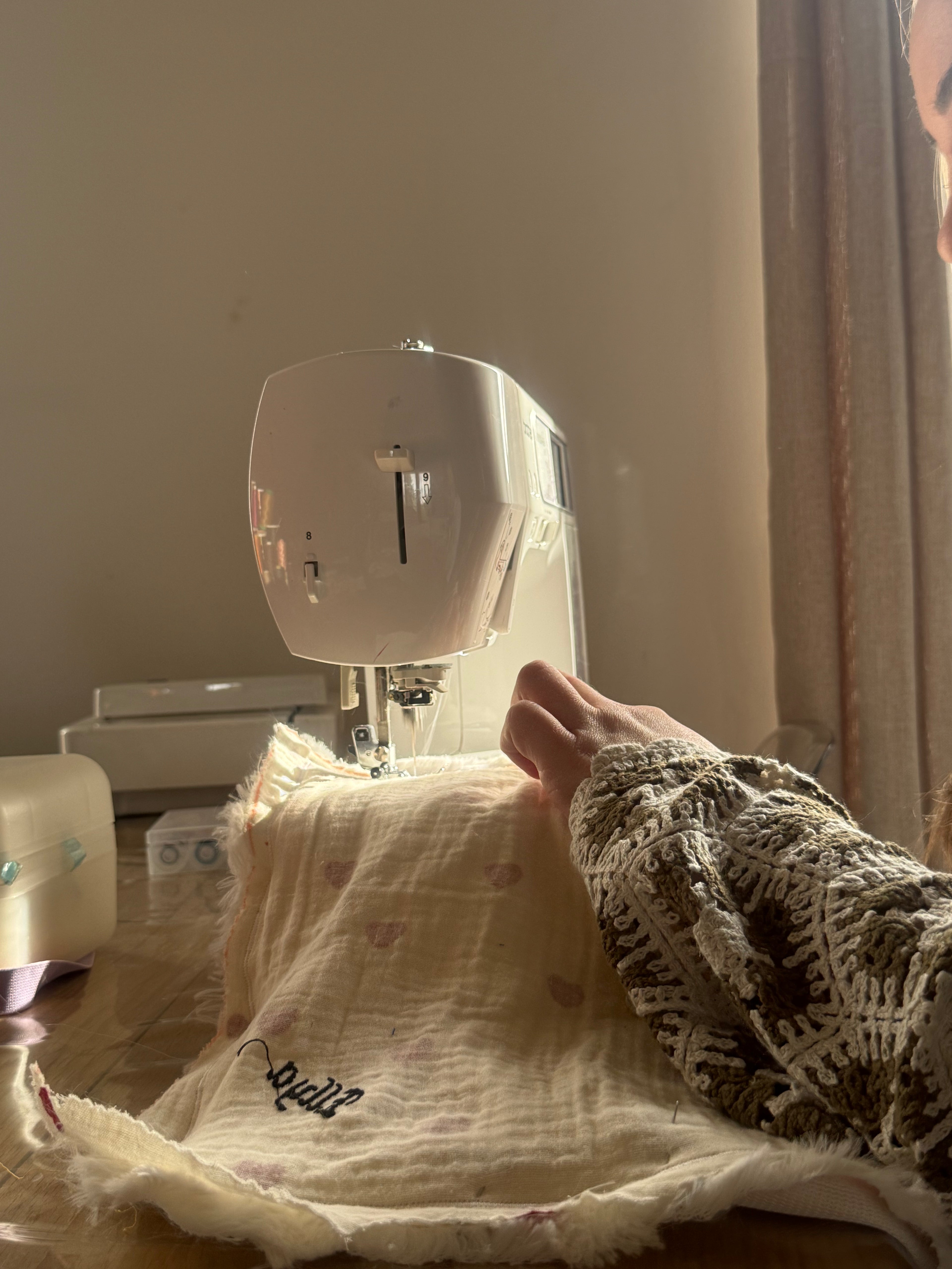 C’est alors que Mamita, ma maman, passionnée de couture et animée par un profond sens du fait main, a donné vie à cette idée. Elle a imaginé un carré de tissu doux, orné de neuf étiquettes cousues à la main, dans trois matières différentes : coton, satin et nylon.