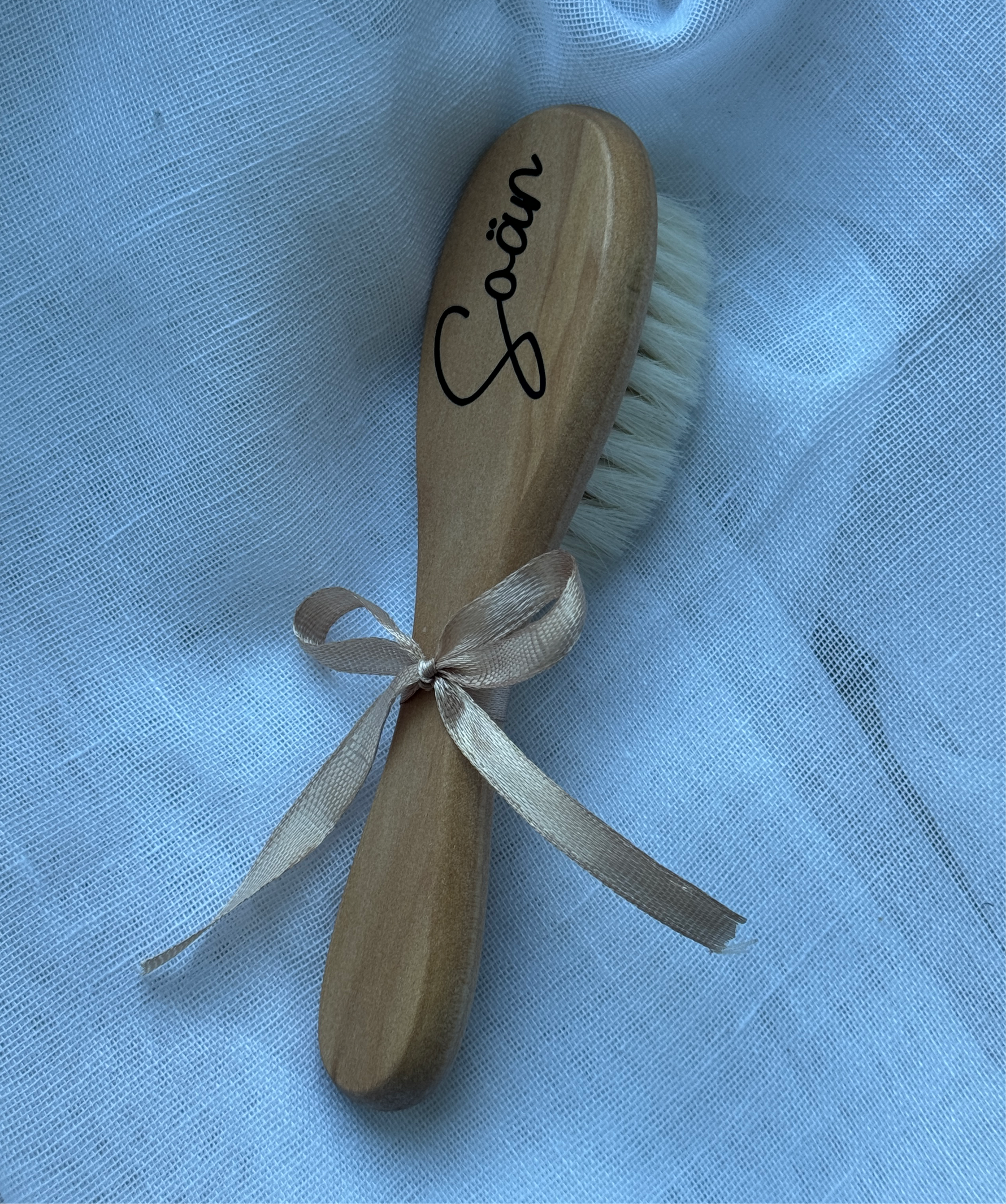 La brosse en bois pour bébé personnalisée est spécialement conçue pour prendre soin du cuir chevelu délicat des tout-petits. Grâce à ses poils ultra-doux et à sa personnalisation élégante, elle devient un indispensable du quotidien et un joli souvenir de naissance.