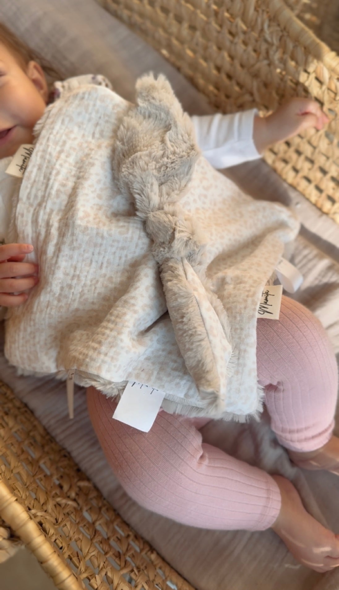 Doudou lapin tout doux – coton léopard & fourrure beige 🤍