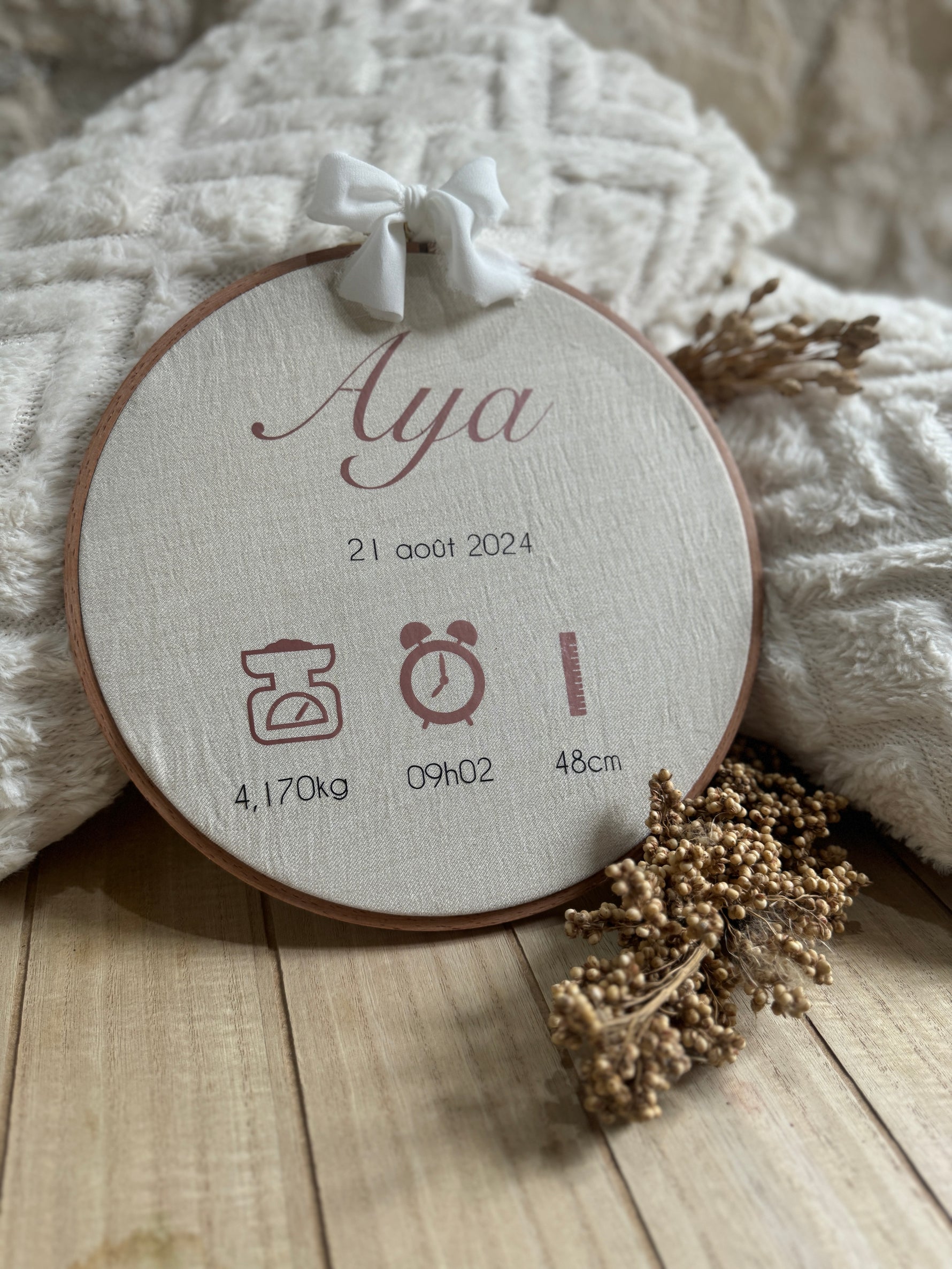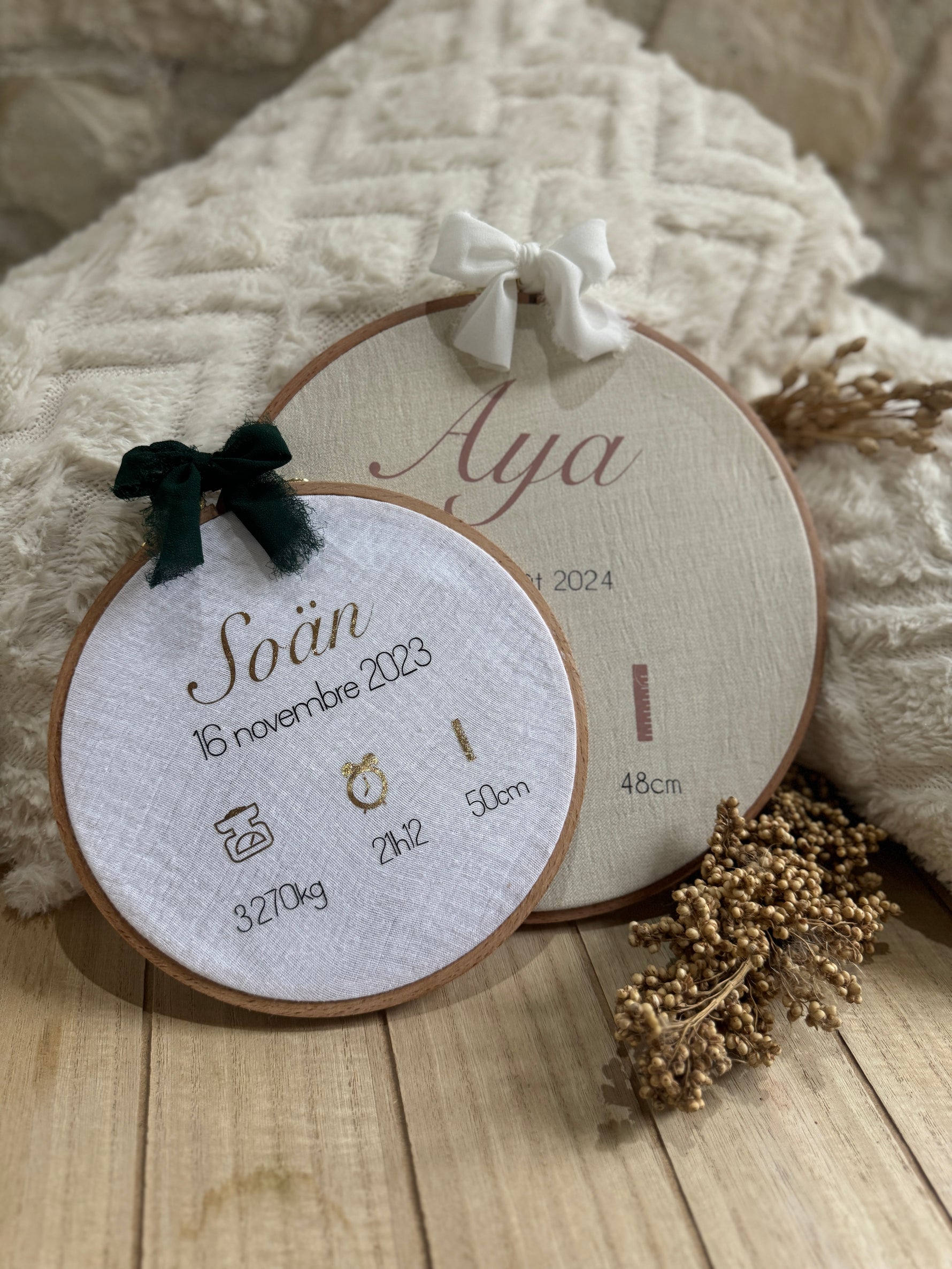 Délicat et plein de poésie, le tambourin personnalisé naissance est une création originale pour célébrer l’arrivée de bébé.