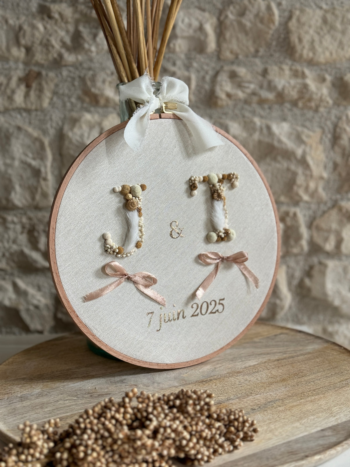 Chaque pièce est réalisée avec soin et personnalisée avec amour. Un souvenir unique que vous pourrez conserver et exposer après le grand jour.